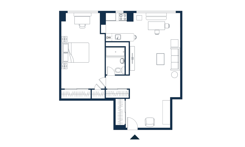 Photos shown are of the actual apartment. Please note floorplans are for illustrative purposes only. Floorplan images may reflect either a model unit or comparable apartment with a similar layout and/or finishes. The actual apartment may slightly differ.