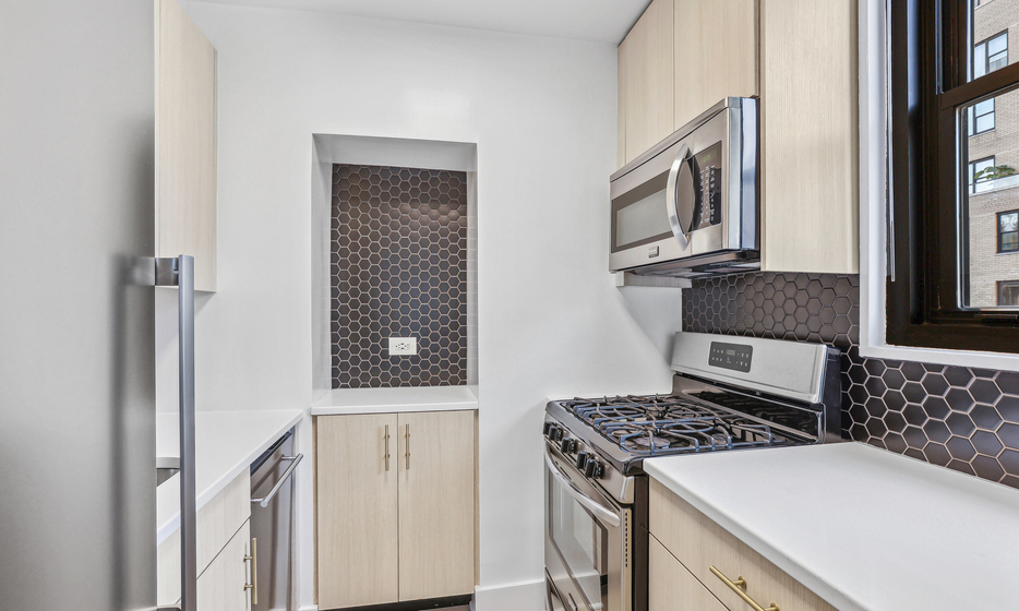 No-fee, 1 bedroom, 1 bathroom apartment located in Columbus Circle. Apartment features a separate windowed kitchen with stainless steel appliances, queen sized bedroom, and spacious floorplan spanning over 650 sq ft.