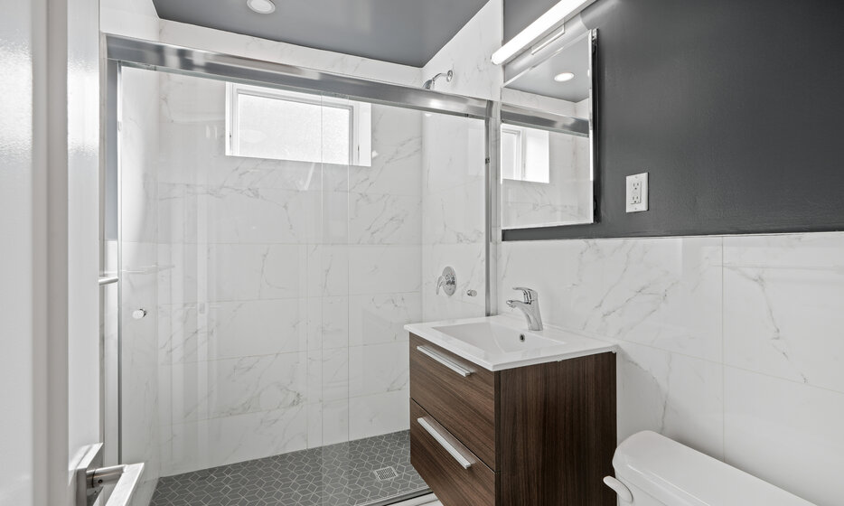 Renovated 1 bedroom, 1 bathroom apartment. This apartment features a renovated kitchen with white caesarstone countertops, custom cabinetry, and stainless steel appliances.